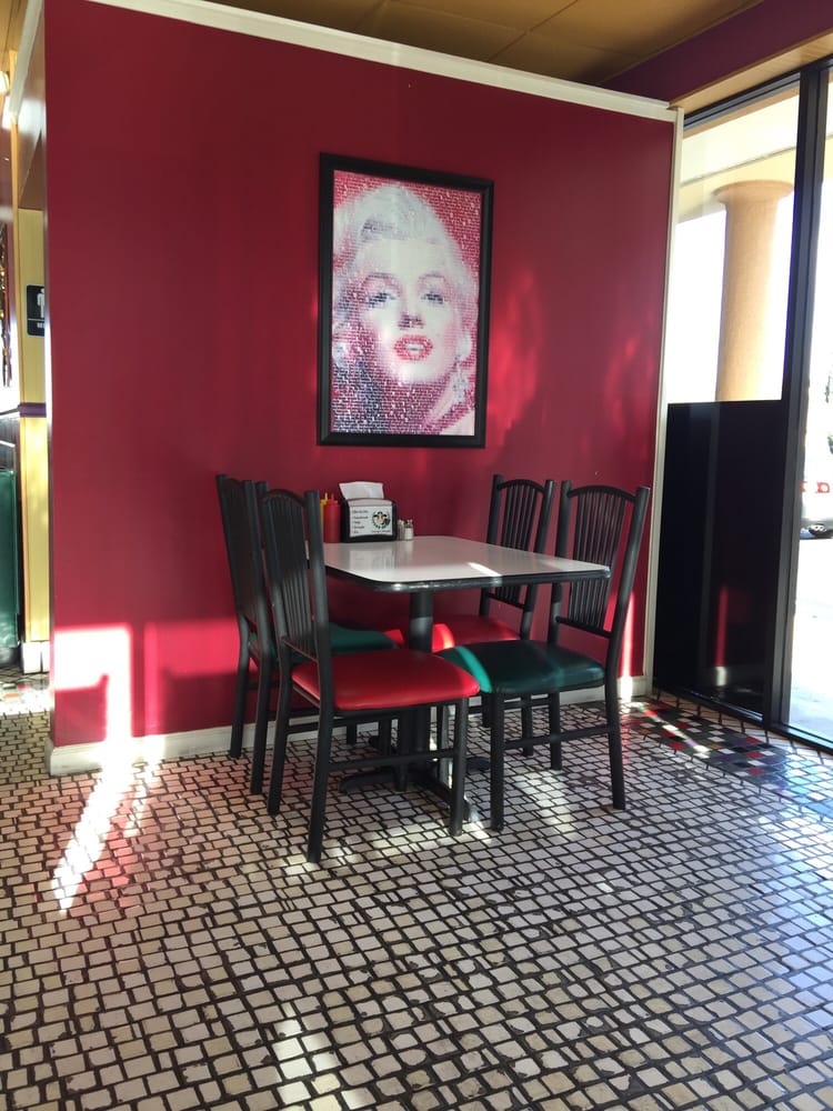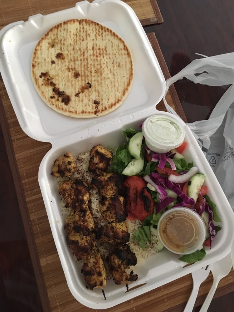 Burgers n middleastern food, two of my fav foods. adequately lit interior with excellent window barriers i've never seen in a burger place before. they let you view the outside without distractions of traffic.